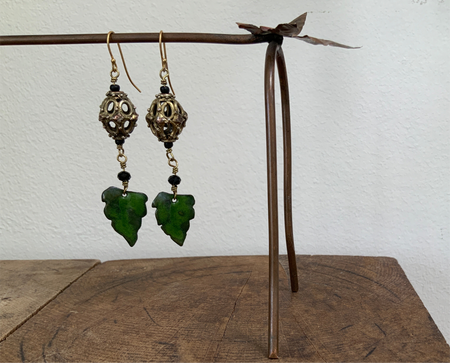 Quick Shop eleven pounds of silver Earrings with Czech Art Deco glass beads and up-cycled brass pendant. 800,00 kr