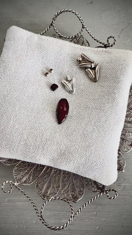 Quick Shop eleven pounds of silver Sterling silver earrings with small garnets and enamel pendant 800,00 kr