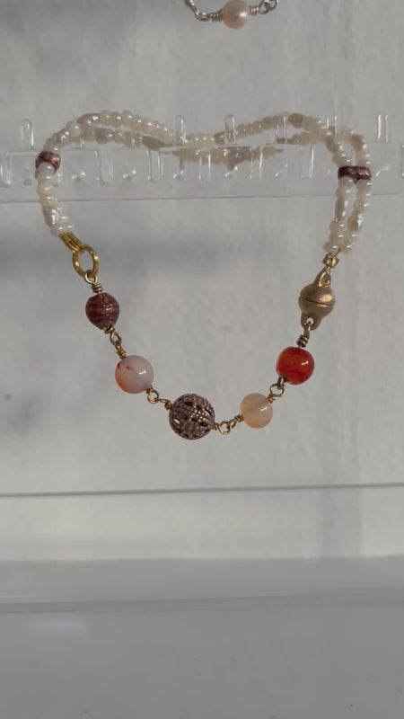 Unique bracelets handmade from upcycled materials. All metals, beads and pearls are recycled from factories or handpicked at street markets and second hand shops across the world.