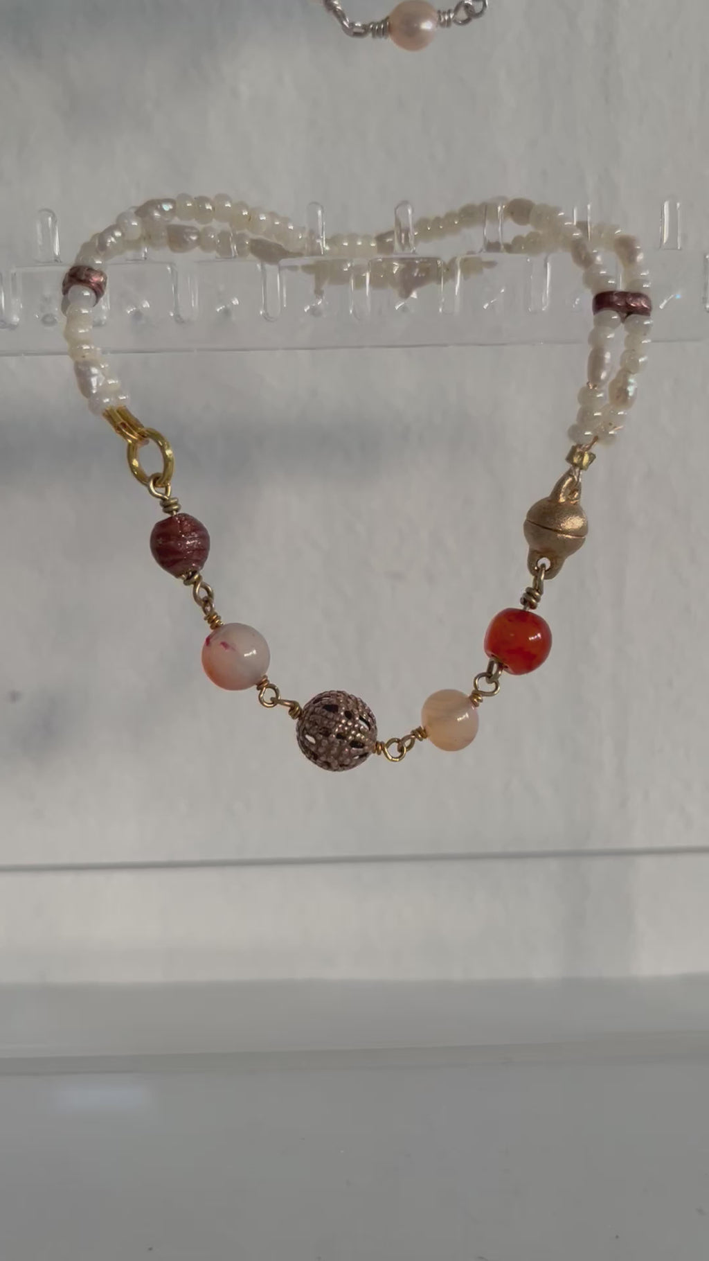 Bracelet with small Murano seed beads from 1980´s, agates and carnelians plus gold-plated brass beads.